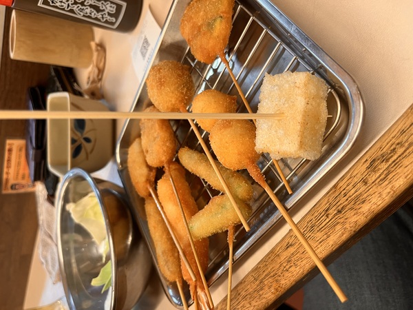 先日、梅田駅から少し歩いた所にある大阪で有名な串カツチェーン店の「串カツだるま」に