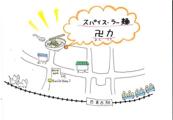 スマイルホテル東京西葛西から歩いて2分ほどの「スパイス・ラー麺卍力(まんりき)」です。よく行列ができているほど人気です。