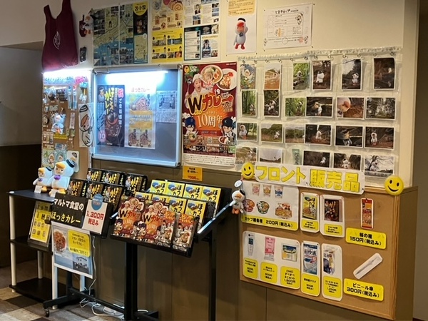 フロントにてカップ麺やスキンケア用品の販売を行っています。