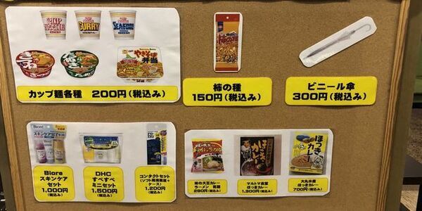 少し小腹が空いた方や、スキンケア用品をお忘れになった方はご利用下さい。