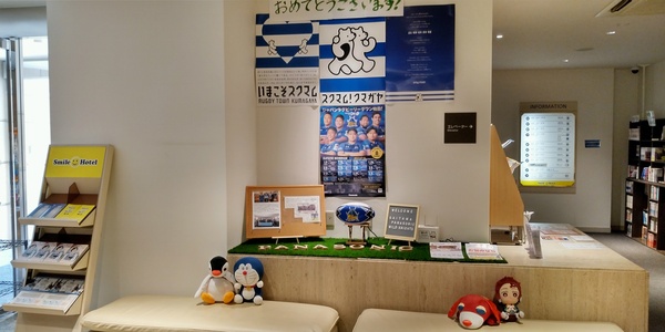 当館でも優勝をお祝いすべく、ロビーに特設コーナーを設けております!