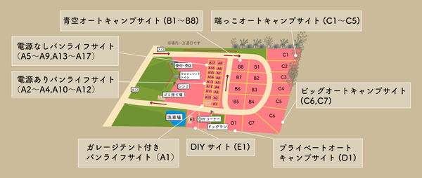 ・キャンプサイトは全サイト『瓦チップ』を採用