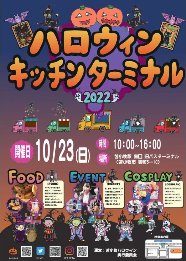 2022年10月23日(日)、北海道苫小牧市にある旧苫小牧駅前バスターミナル跡地で行われるハロウィンキッチンターミナル2022は更にスケールアップ!