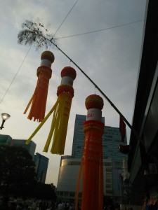 もうすぐ仙台七夕まつり。毎年8月の6,7,8に開催です。仙台駅前には、一足早く飾られていましたよ。