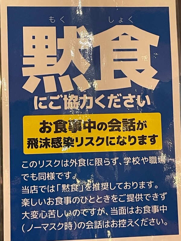 また、レストランご利用の際も黙食をお願いしております。