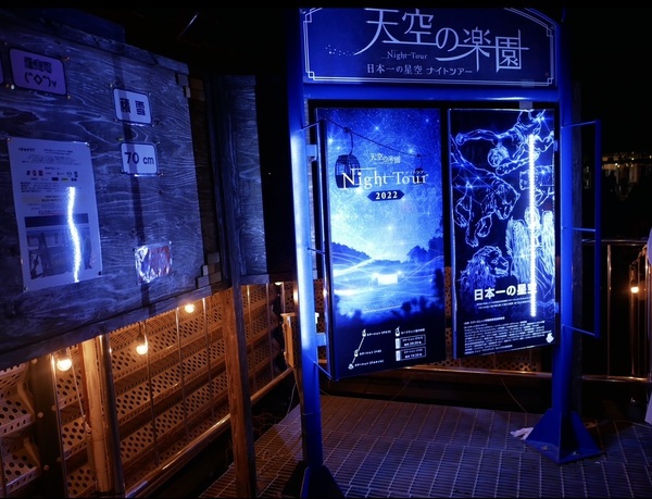 ずっと見てみたかった夜空で、ゴンドラに乗って山頂へ行き