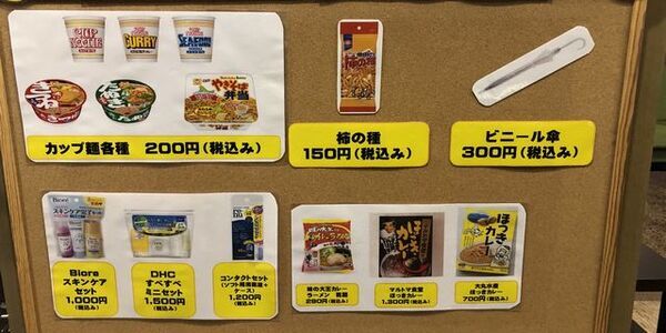 フロントにてカップ麺やスキンケア用品の販売を行っています。