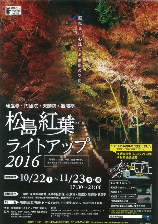 松島紅葉ライトアップの詳しい内容や周辺イベントは松島観光協会のWebサイトからご確認下さい。