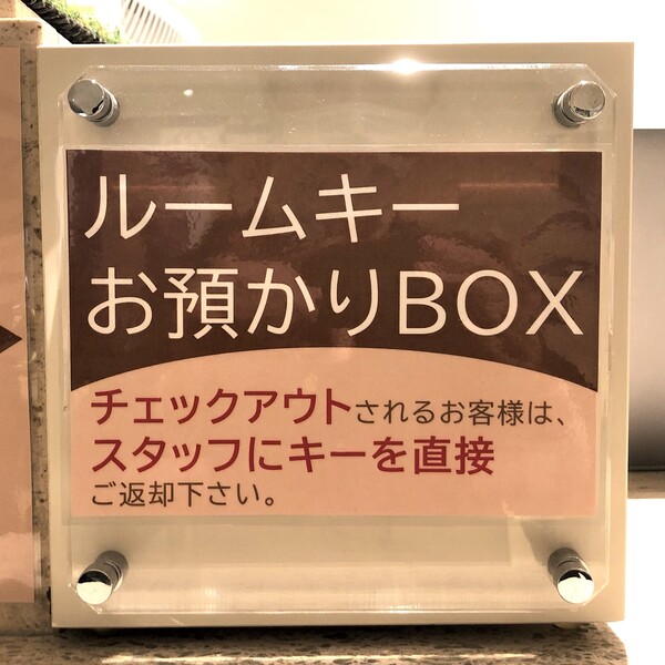 本日はフロントデスクにございます「ルームキーお預かりBOX」をご紹介いたします。