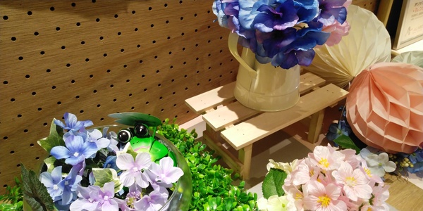 数日前に館内ロビーに鯉のぼりを飾ったのですが、あっという間にGWも明け、沖縄地方では梅雨入りしたとのことで、館内ロビーを梅雨仕様にチェンジしてみました!