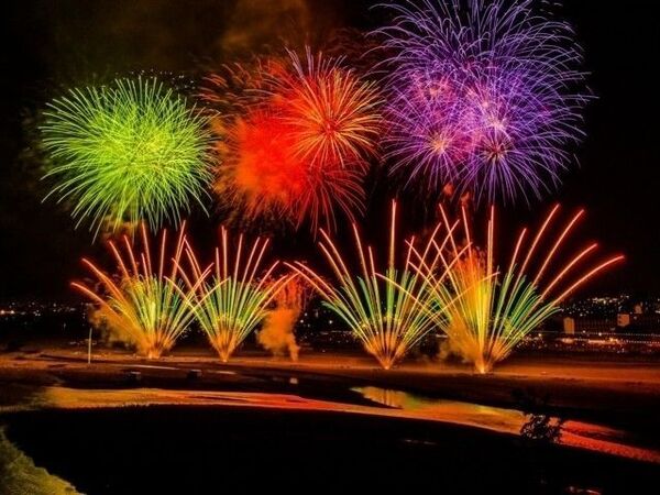 打ち上げ会場は河川敷を広く使った4カ所での打ち上げが予定され、短時間の打ち上げで、より密度の高い花火を楽しむことができます☆
