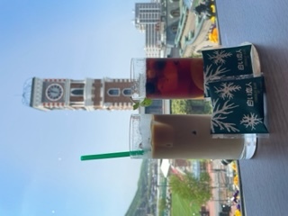 パーク内は、外の景色を見ながらスイーツ食べる事もでき