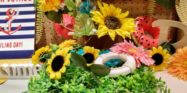 ヒマワリにハイビスカス、朝顔と、夏花三羽烏が勢ぞろいし、ちょっとしつこいくらいに夏を演出してみました!