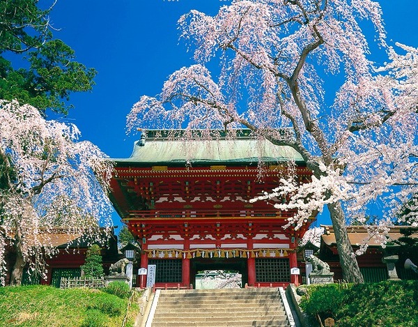 ↑塩竈神社 随身門と桜(写真提供:宮城県観光課)