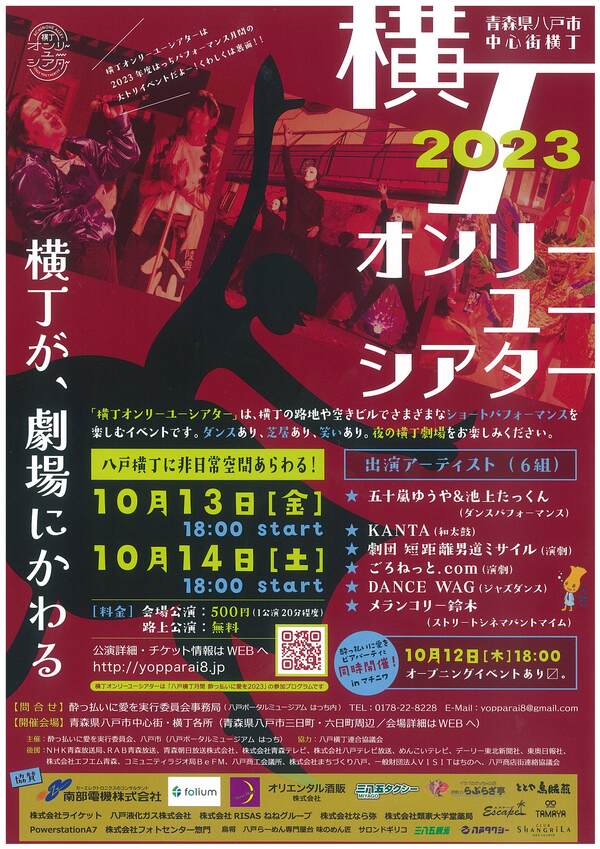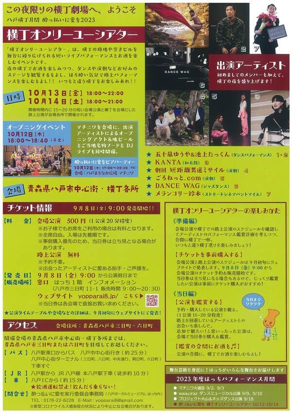 その期間のイベントとして、10月13日(金)・14日(土)には、「ダンス・演劇・和太鼓演奏」など、様々なライブパフォーマンスを横丁で行う、「横丁オンリーユーシアター」が開催されます。