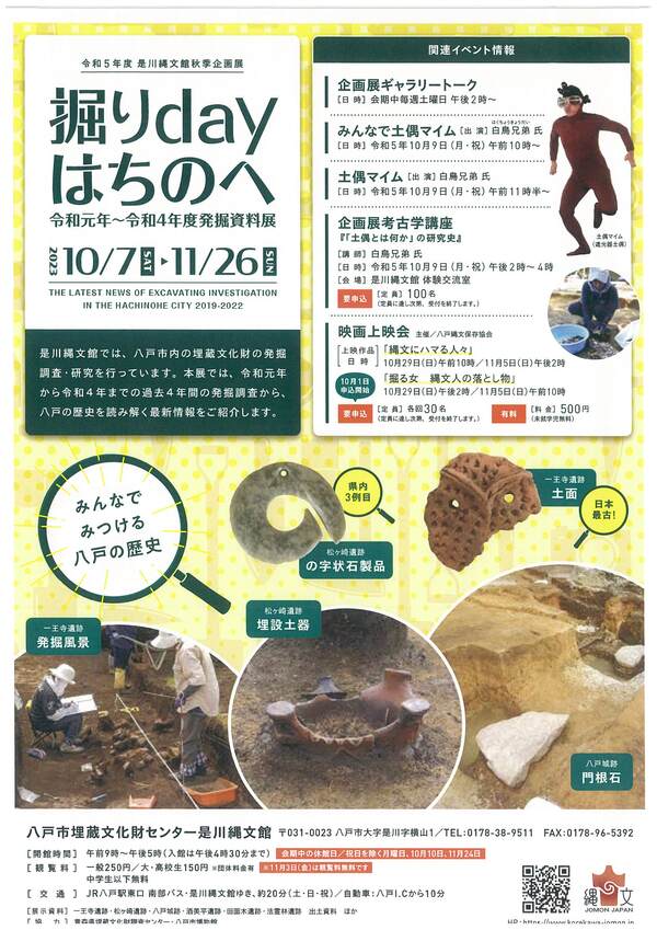 10月7日(土)~11月26日(日)の期間、是川縄文館では、「企画展 掘りdayはちのへ」が開催されています。
