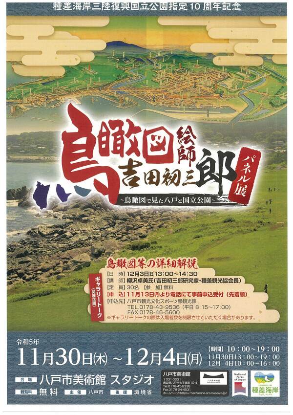 11月30日(木)~12月4日(月)に八戸市美術館では、「鳥瞰図絵師 吉田初三郎パネル展~鳥瞰図で見た八戸と国立公園」が開催されます。