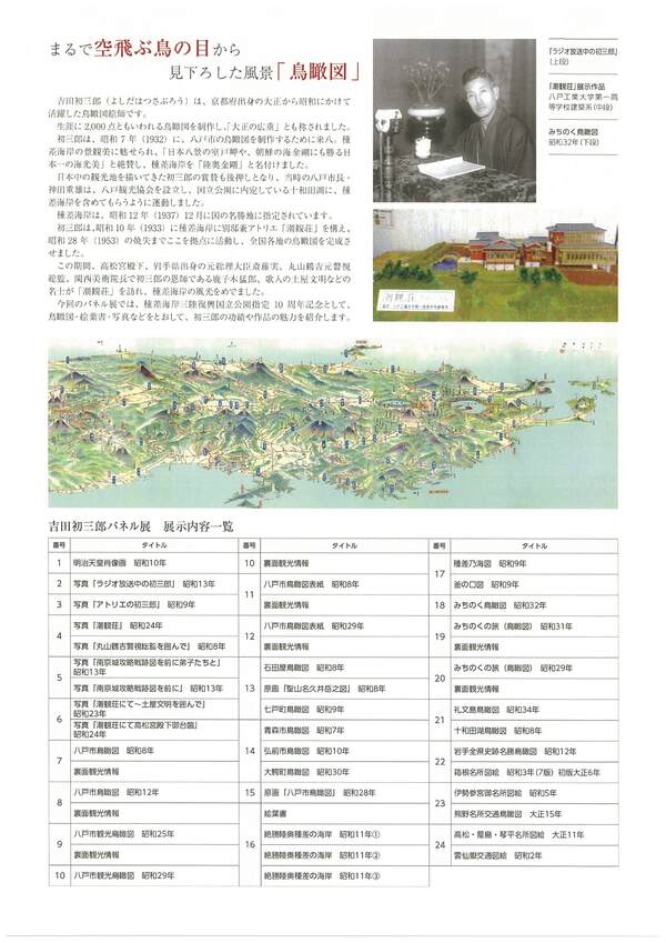 11/30(木)~12/4(月)に八戸市美術館で「鳥瞰図絵師 吉田初三郎パネル展」が開催されます。