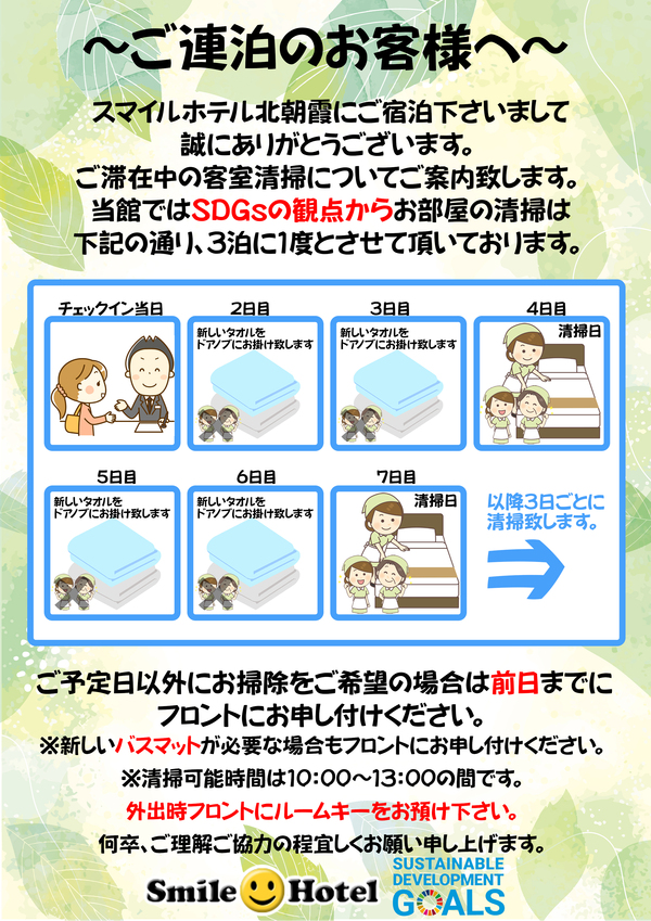 <スマイルホテル> SDGsの取り組み(ご連泊されるお客様へ)