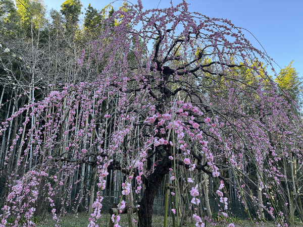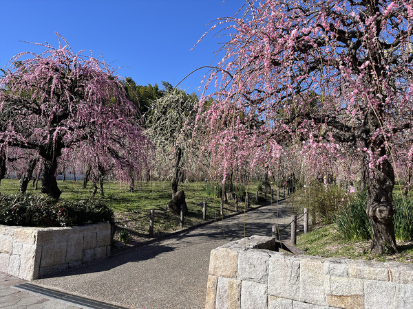 園内にはたくさんのしだれ梅が咲いており、梅の香りも感じました。