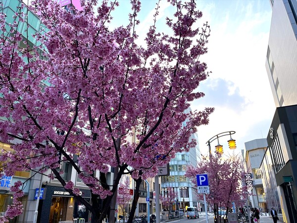 早咲桜「オカメザクラ」が見ごろを迎えています。