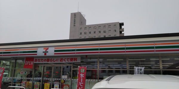 写真をご覧くださいませ。セブンイレブン熊谷筑波店様の後ろに当館建物がそびえ立っております。