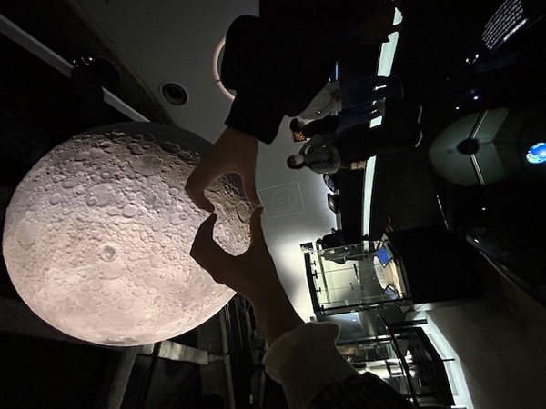 実際に触ったり、動かしてみるなどの体験ができます。また、月の前でハートマークを作るというInstagramで流行っていたので友人と撮ってきました。