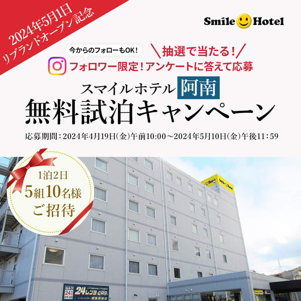 『スマイルホテル阿南』リブランドオープン記念!無料試泊キャンペーンのご案内
