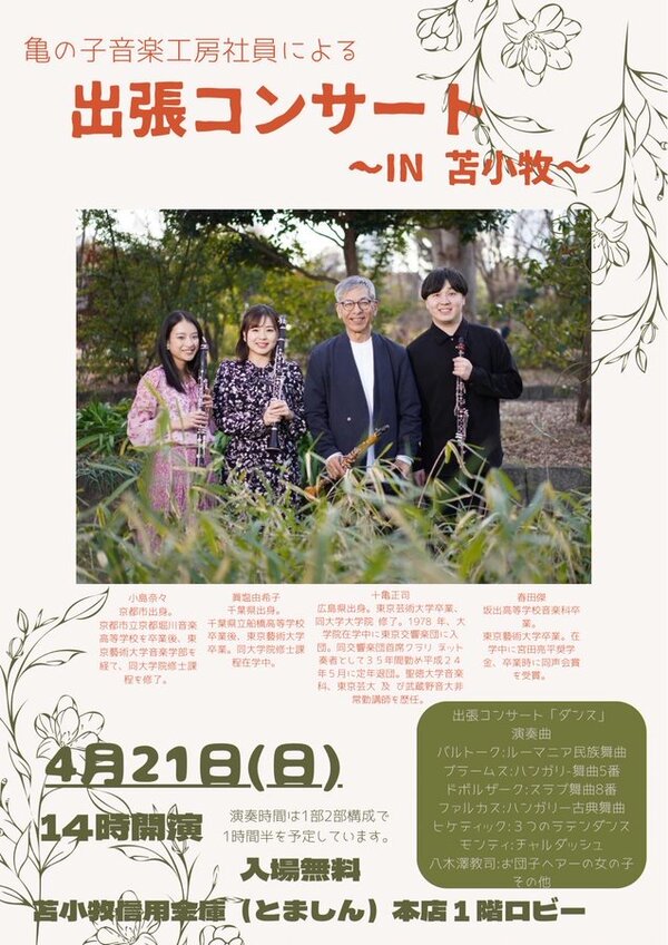演奏者は、東京の音楽事務所「亀の子音楽工房」に所属する4人で、全員が東京芸術大学卒。ドボルザークのスラブ舞曲8番や、ブラームスのハンガリー舞曲5番などクラシックを中心に演奏する。
