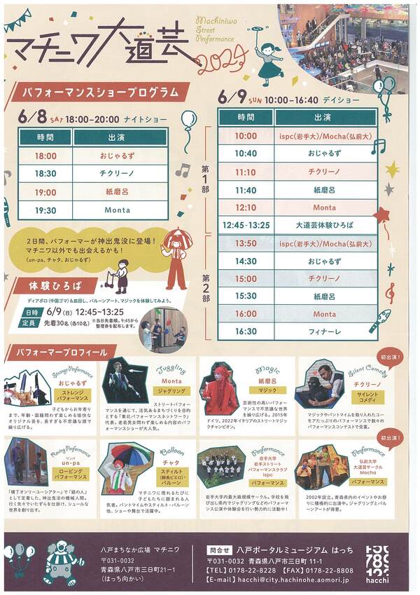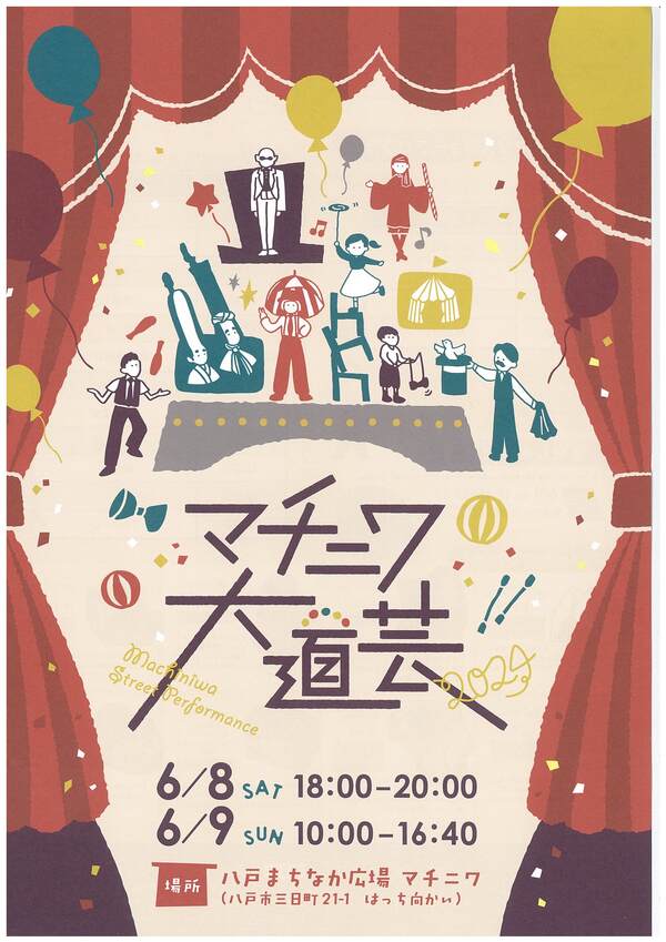 「八戸まちなか広場 マチニワ」で、「マチニワ大道芸2024」が、今年は、6月8日(土)・9日(日)の2日間の予定で開催されます。