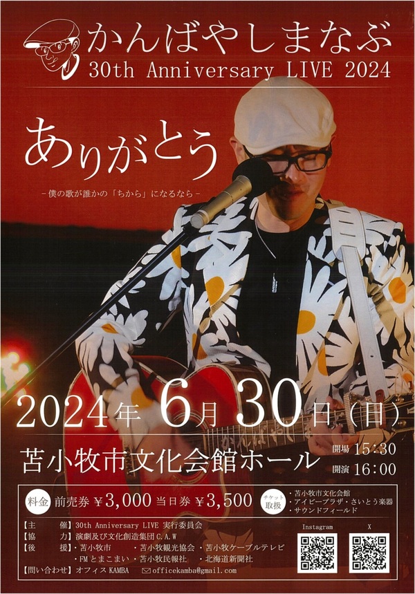 苫小牧市文化会館にて、かんばやしまなぶ30周年記念ライブの