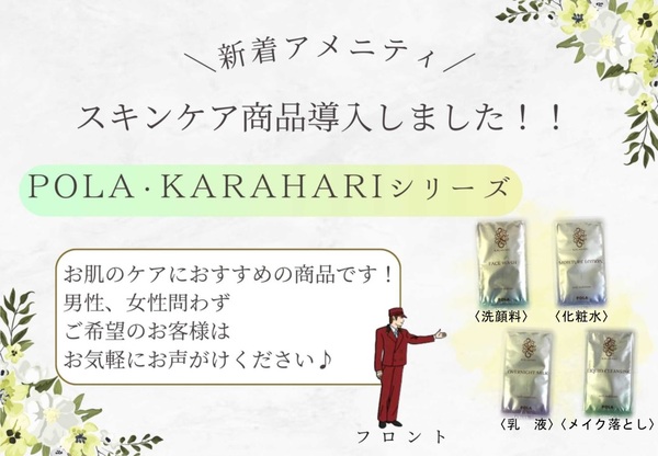 当ホテルでは新たにスキンケア商品をアメニティに追加いたしました。