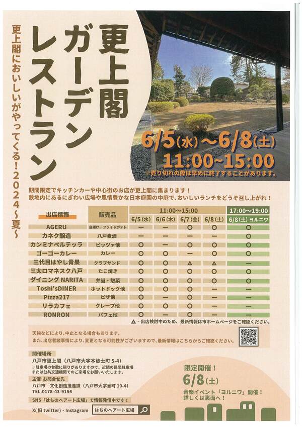「今年も期間限定でキッチンカーや中心街のお店が更上閣にやってきます。