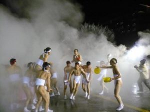 厳寒の冬、豊富な湯量と多彩な泉質を誇る「湯」への感謝と、湯が尽きることのないよう繁栄と無病息災への祈りを込めた祭りです。 中でも4日には下帯姿の若者たちが、激しくお湯を掛け合う「源泉湯かけ合戦」や「道祖神裸ねりこみ」は勇壮で、イベント会場は熱気の渦に巻き込まれます。