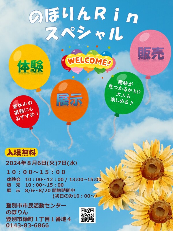 今回は登別市で活動する団体やサークルのメンバーが19種類の体験ブースを設け、缶バッジなどの小物作り、手話、筆文字体験などを企画している。