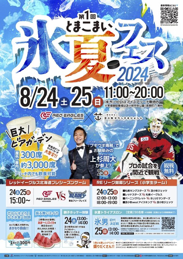 氷に親しむイベントを初開催。アイスホッケーアジアリーグのレッドイーグルス北海道のプレシーズンマッチ観戦や親子ホッケー体験が無料で、会場には「巨大ビアガーデン」も登場する。今後シーズン入りする競技を楽しみながら盛り上げる内容。
