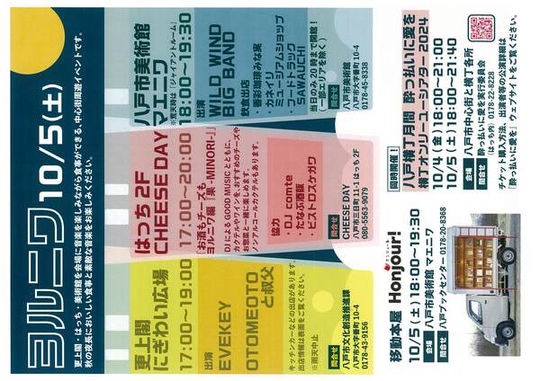 また、10月5日(土)には「ヨルニワ」と称して、「更上閣にぎわい広場・はっち 2F CHEESE DAY