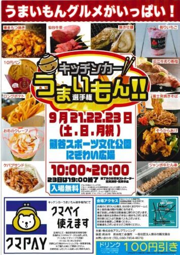 キッチンカーうまいもん選手権が熊谷スポーツ文化公園内のにぎわい広場で開催されます★