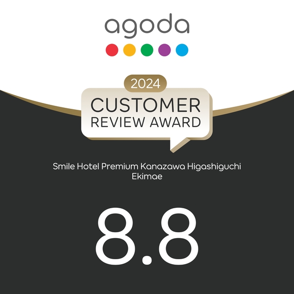この度スマイルホテルプレミアム金沢東口駅前は旅行予約サイagoda様にて、、ユーザーへの優れたサービスの継続的な提供で、「8.0」以上のクチコミ評価を獲得している施設に贈られるアワードである【2024 agodaクチコミアワード】を受賞いたしました。